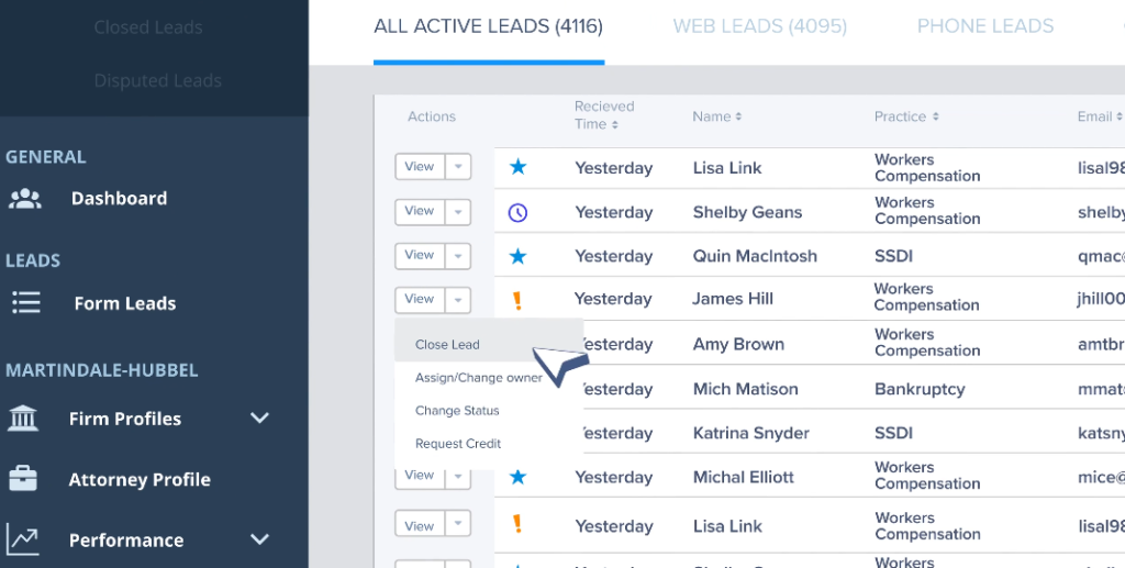 Martindale-Avvo Leads Manager: How To Request a Lead Credit