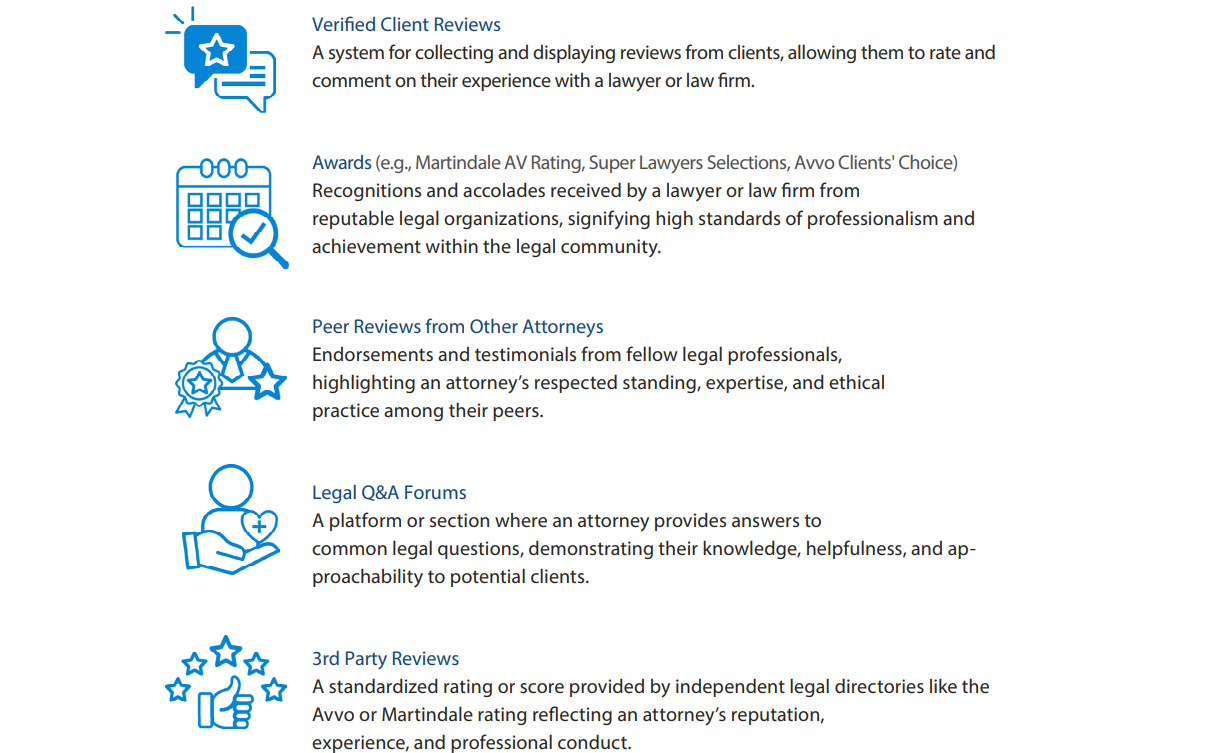 In today’s AI-driven environment, the path prospective clients take is dynamic and rarely follows a straight line. Rather than moving from search to a single point of contact, clients engage in a continuous process—moving across search engines, law firm websites, professional profiles, and AI-generated summaries before reaching a decision. Throughout this journey, trust-builders such as verified reviews, client ratings, and peer recognition play a decisive role in shaping whom they choose to contact.