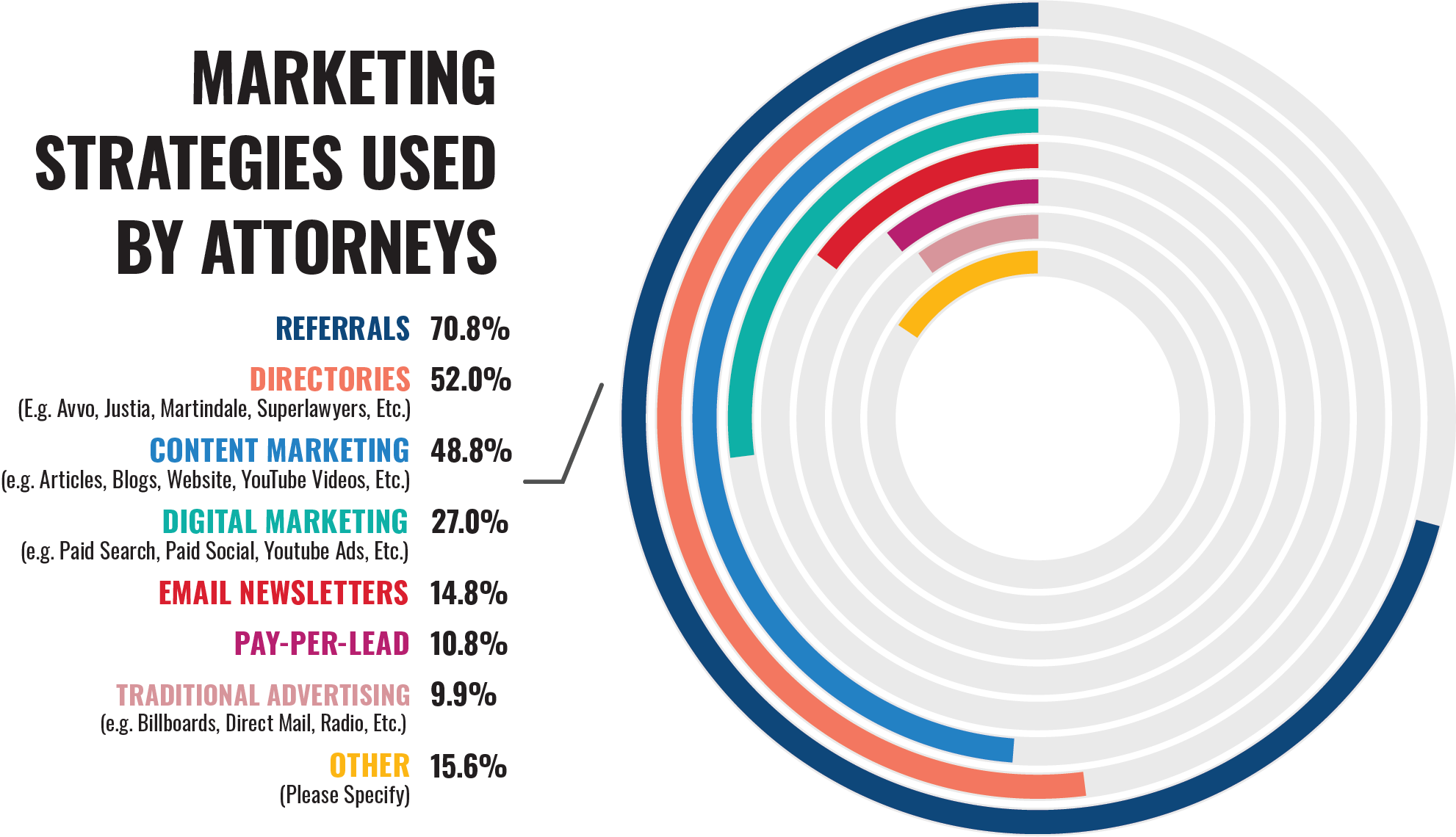 Of the attorneys we surveyed as part of The Business of Your Practice report, only 10% stated they have an effective marketing strategy in place. In the report, we explore additional insights on marketing strategies law firms are using, compensation, and more.